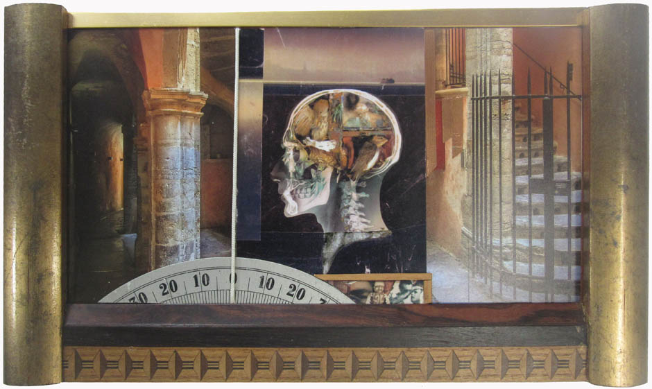 Assemblage of found objects and photographs.