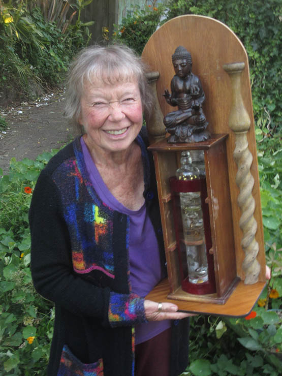 And the back cut from a sheet of lovely wood, with, of course, a Buddhist sacred figure