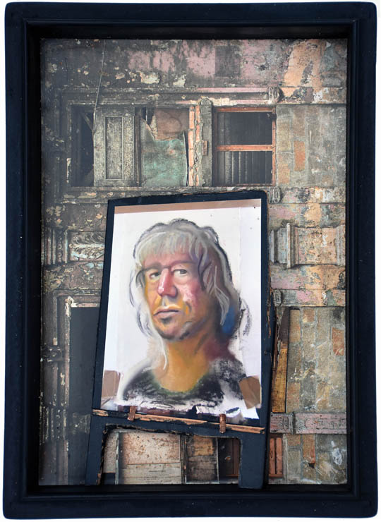 Pinned on a ramshackle easel, in a rough and ragged studio.