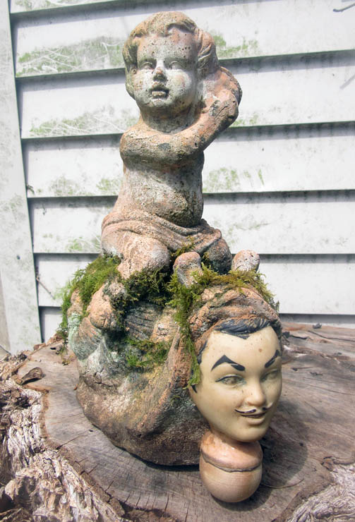 I tried all the heads and faces which were lurking in my studio, and found the perfect one.