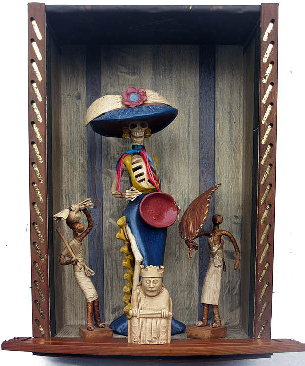 Madame Death, a figure which I (very carefully) brought back from Mexico some years ago,